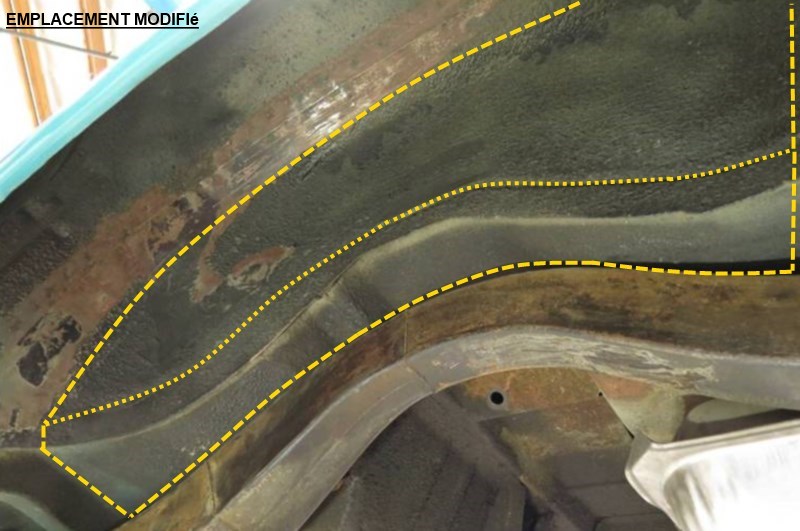 | Pour le changement de passage de roues c'est beaucoup plus lourd (on coupe et on soude) mais cela donne une caisse ayant la largeur d'origine tout en ayant les gros pneus. On gagne en retirant la partie de plancher entre le passage d'origine et le longeron . Dans certains cas il faut aussi modifier l'armature de la banquette si elle est encastrée sur le passage de roue . | |||||||||||||||||||||||||||||||||||||