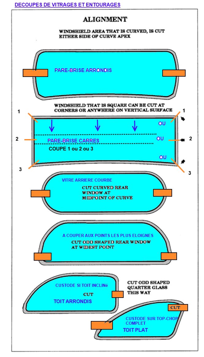 3-LES CAISSES ou COQUES ( SHELL ) : NOM DES ELEMENTS / MONTANTS (PILLAR) / FENETRES (WINDOWS). Le mot SHELL , litérallement coquillage, reprends l'image de la coque d'un coquillage, ce qui englobe et protége. C'est aussi le symbole d'un pétrolier bien connu. Certaines choses sont bien codifiées aussi bien d'un point de vue technique que d'un point de vue stylistique. Techniquement aux USA chaque élément, amovible ou non, à un nom bien défini. Cela va même jusqu'au montants (PILLAR) qui sont repérés dans un ordre précis de l'avant à l'arriére. Le montant A (A PILLAR) sera toujours le montant de pare-brise. Le montant B (B pillar) est appelé chez nous MONTANT CENTRAL. Lorsque qu'il n'y en a pas (PILLARLESS) on dit " SANS MONTANT " chez nous mais HARDTOP (toit rigide) aux USA. |