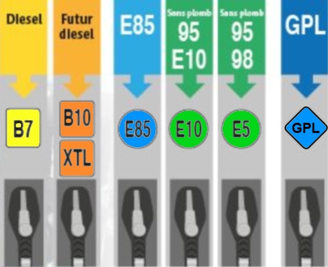 - On à remplacé le plomb par des additifs notamment anti-détonnants ( toluéne, iso-octane, ferocéne, pentacarbonyle de fer, etc... ). Avantage pas de plomb (saturnisme) mais inconvénients pour les véhicules non conçus pour. Apparition en 2000 du SP98 (indice RON 98 donc) carburant dit universel puis le SP95 (RON 95) pour les moteurs moyennement performants. En fait avec les avancés technologiques (injections multipoints et allumage electronique intégral ) le SP95 est devenu le passe-partout. Ces 2 carburants contiennent néanmoins une part d'éthanol (plus exactement de l'ETBE ) jusqu'à 5 %. Pour information il est apparu en 1973-1974 aux USA (véhicules compatibles). Le SP95-E10 apparu en 2009 est bien un SP95 avec un pourcentage d'au moins 10 % d'ethanol (agro-éthanol ) et avait pour vocation de remplacer le SP95 de base. Le but était de remplacé une partie du carburant fossile (pétrole) par une source absorbant du Co2 (agricole) afin de limité le bilan carbone. On y trouve 2 inconvénients: surconsommation de 1 à 2 % et nécéssite des bougies froides plutôt que chaudes . De plus l'éthanol à un effet corrosif , notamment sur les joints , il est déconseillé aux véhicules d'avant 2009 même si des listes de compatibilités par constructeur sont disponibles ( voir la remarque * sauf exceptions ). Et il est conseillé d'alterné avec un plein de SP standard tous les 3 pleins. |