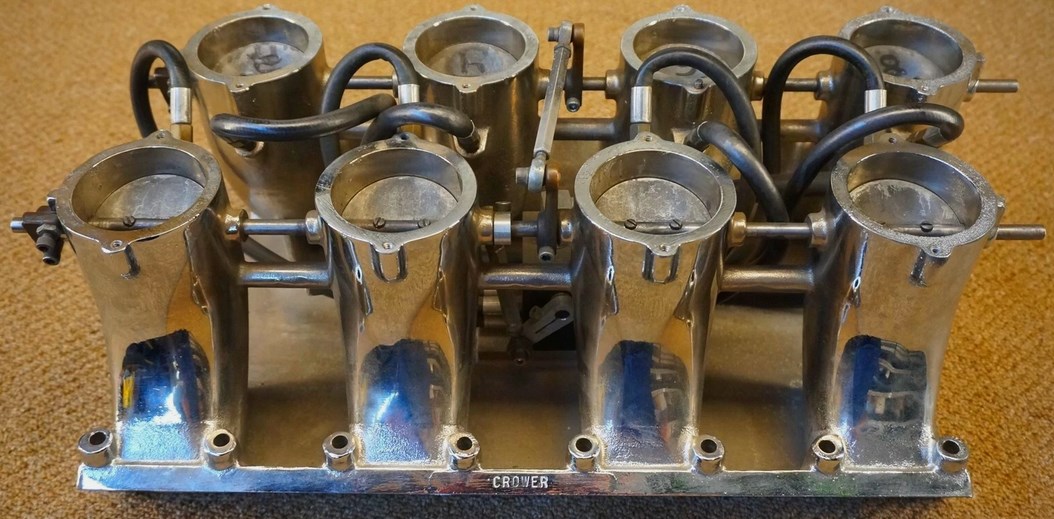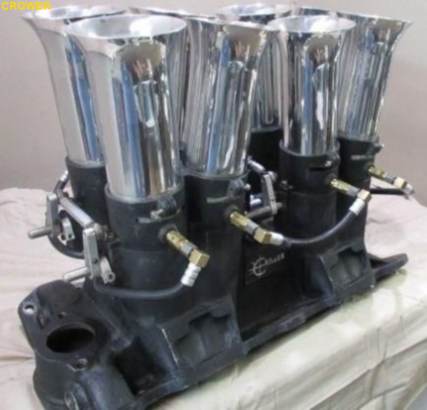 Toujours présent aujourd'hui en compétition et même jusqu'au 24h du mans sur corvette et Cadillac ( mais avec des injecteurs électriques). Cependant beaucoup de vintage aussi avec des applications jusqu'au Hemi 426ci Mopar. Bien sur on peut ajouter un compresseur si ça ne suffit pas avec un scoop magnésium. Crower fait aussi d'autres piéces mécaniques de performance : piéces moteur, embrayage, etc .... . |