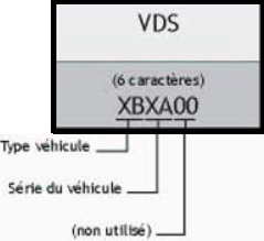 Le VDS Vehicle Descriptor Section est composé de 6 caractères qui servent à décrire les caractéristiques techniques du véhicule. On peut y trouver le type de véhicule (voiture, camion, etc.), le type de moteur, le type de toit, la carrosserie, etc. | ![]() |