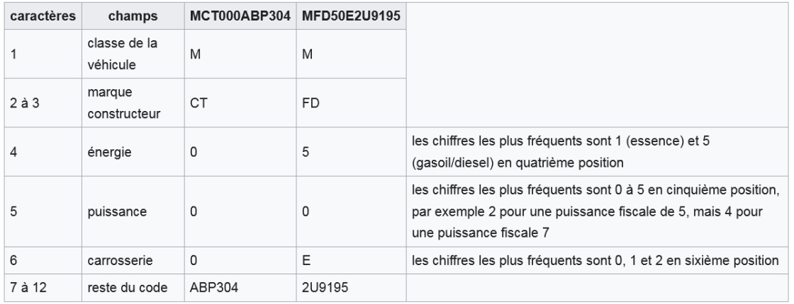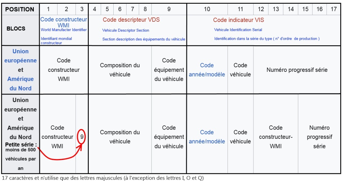 | Exemple de VIN anciens : | ||||||||||||||||||||||||||||||