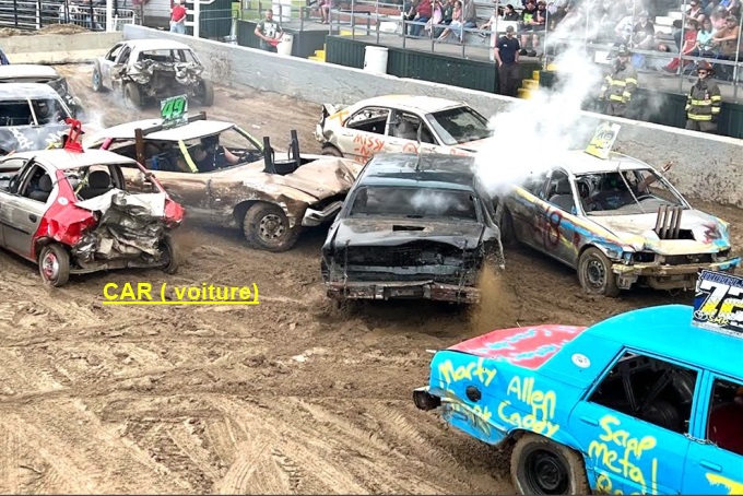 | 3- DEMOLITION DERBY USA : espace terre fermé, il ne doit en rester qu'un: voiture, pick-up, bus, moissonneuse.