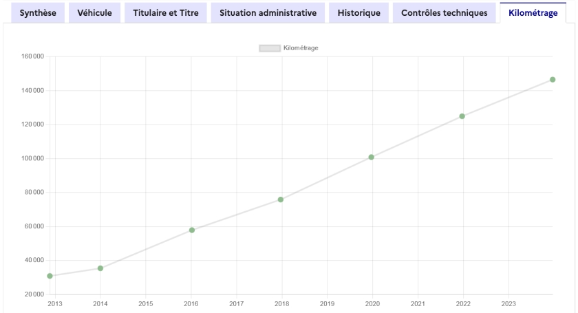 - du générique sans grand intérêt sur cet exemple s'agissant d'un historique payant. - historique (évolution) du véhicule ridicule ( histovec fait beaucoup mieux). - aucun kilométrage réel. |