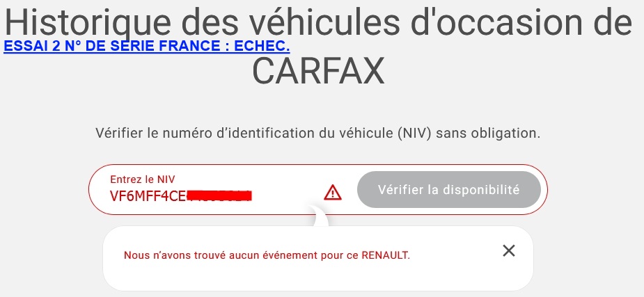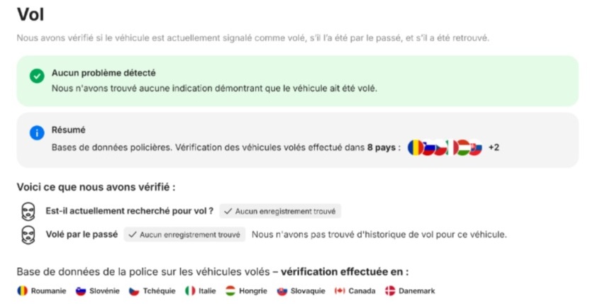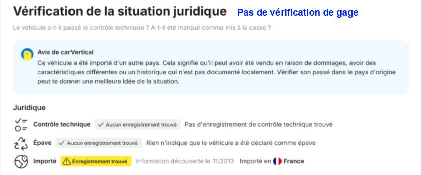 | Nota : l'histovec indiquera l'éventuelle importation mais pas forcément le pays. On ne peut donc pas savoir quel service officiel d'historique étranger consulter. Pour contourner le probléme on peut essayer un payant comme Car-vertical ( plus complet hors de France car interrogation déclarations assurances, forces de l'ordre etc... ). | |||||||||||||||||||||||||||||||||||||||||||||||