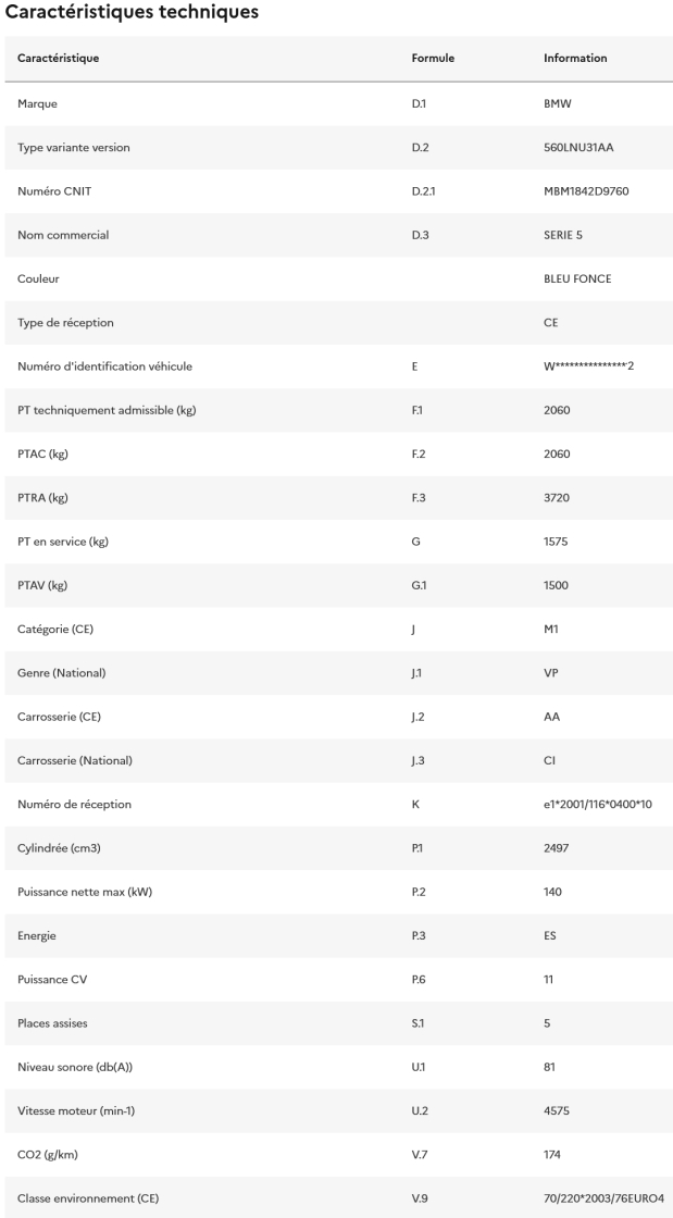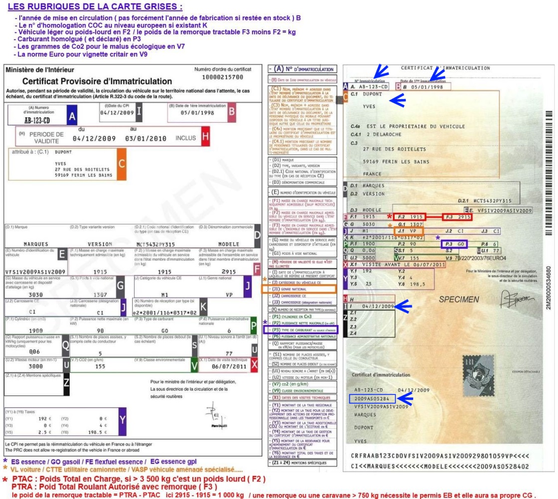 | Permet de connaitre l'origine du véhicule et le nombre de propriétaires précédents ( Nbre de main). | |||||||||||||||||||||||||||||||||||||||||||||||