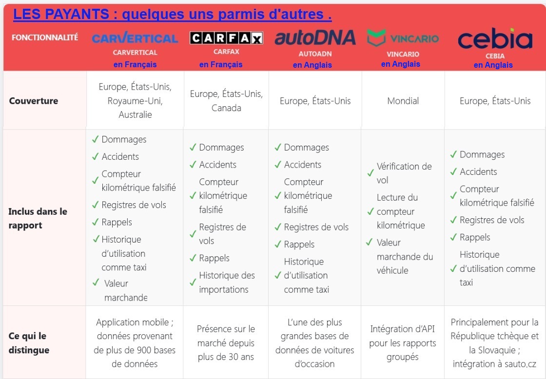 | RECHERCHER L'HISTORIQUE D'UN VEHICULE en FRANCE , en EUROPE ou aux USA. | |||||||||||||||||||||||||||||||||||||||||||||||