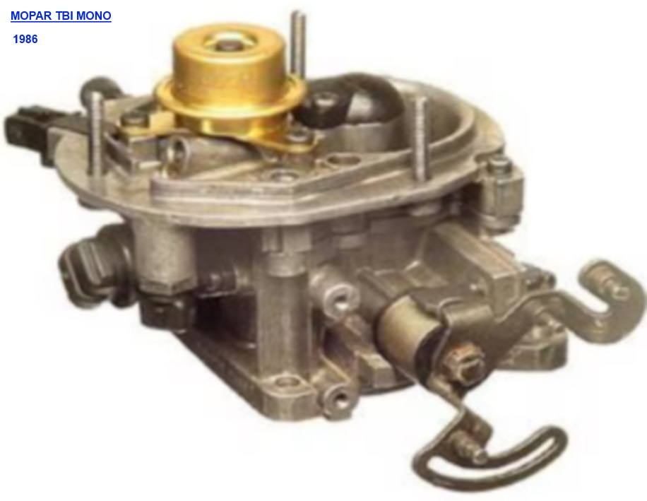 | Les injections monopoints courantes par groupe de constructeurs, GM FORD MOPAR, aux USA . Elles remplacent les carburateurs dans les années 80 pour des raisons techniques, économiques et écologiques. Monopoint car une seule entrée de carburant à l'admission comme décrit dans généralités . | ||||||||