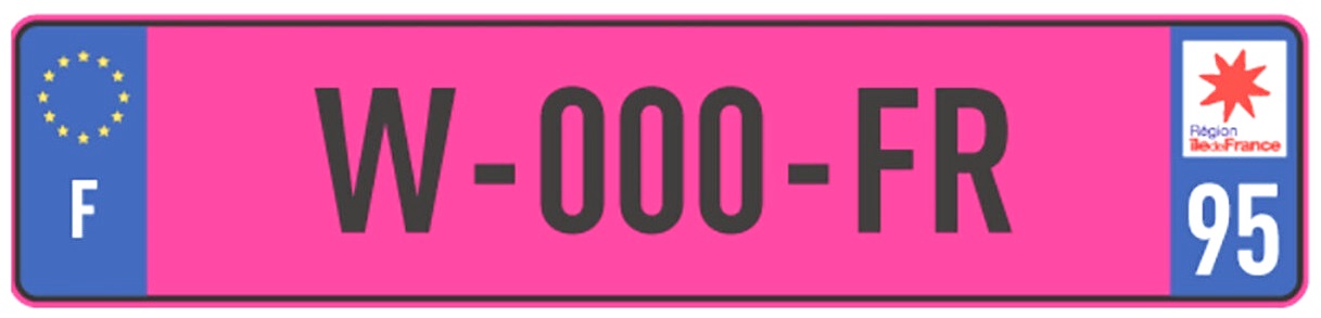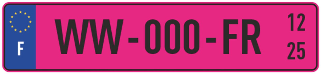 | Des plaque WW provisoires ( temporaire importation 846a / modifications techniques carrosserie / jamais immatriculé France / etc... ) anciennement blanche classique, elles sont passées roses en 2026 pour un meilleur repérage ( arrété publié en décembre 2025 ). Une date limite est inscrite sur le coté de la plaque. Elles sont valables 2 mois renouvelable 2 mois et il faut pouvoir justifier d'une demande d'immatriculation dans l'ANTS pour les obtenir. Elle ne remplace pas un changement de titulaire classique ( sous un mois). | ||||||||