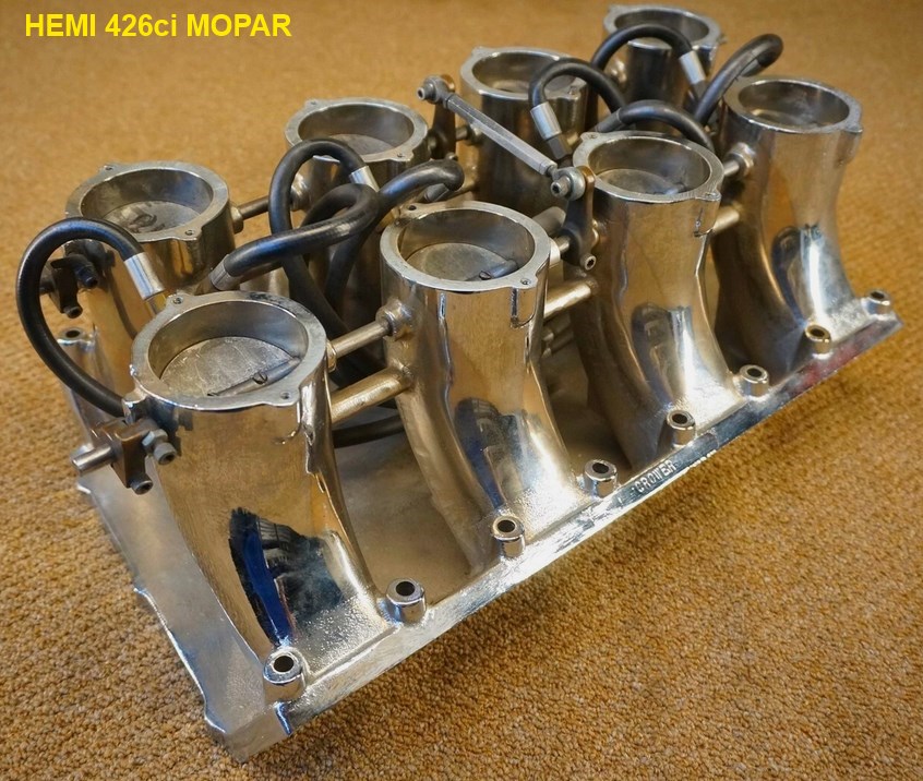 Toujours présent aujourd'hui en compétition et même jusqu'au 24h du mans sur corvette et Cadillac ( mais avec des injecteurs électriques). Cependant beaucoup de vintage aussi avec des applications jusqu'au Hemi 426ci Mopar. Bien sur on peut ajouter un compresseur si ça ne suffit pas avec un scoop magnésium. Crower fait aussi d'autres piéces mécaniques de performance : piéces moteur, embrayage, etc .... . |