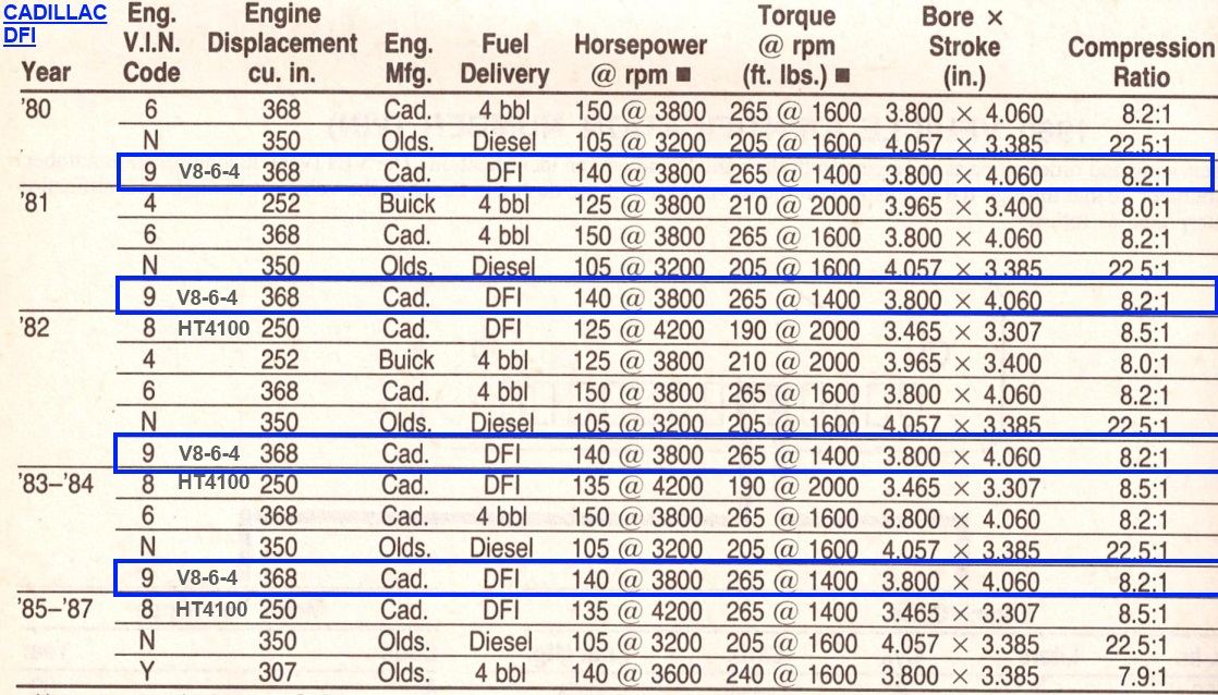 | CADILLAC 1980-1984 DFI MONOPOINT (TBI) et DESACTIVATION de CYLINDRE sur V8-6-4 368ci L62. |